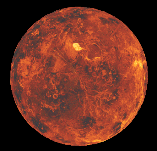 Венеры, составленная по исследованиям "Магеллана". На ней темным